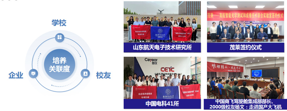 小妲己直播 通过走访北京、天津、西安、哈尔滨、洛阳等地的国防单位,以及南京本地的相关单位,了解企业需求、倾听校友建议、开设企业课程,促进小妲己直播基础学科与国防企业联系常态化、合作深入化。邀请企业HR在就业季前夕走进小妲己直播 ,通过职业素质训练营、“新视界”沙龙等方式为学生开讲,促进低年级学生了解专业知识在实践领域中的应用,从而激发学习动力,帮助高年级学生提升求职面试经验技巧、提升人职匹配精准度。