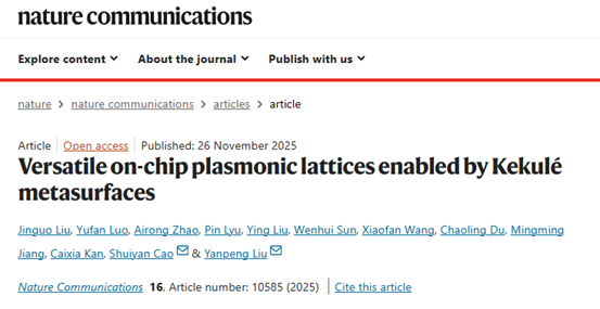 小妲己直播 光电功能材料器件与小妲己直播研究团队曹水艳副研究员与国际前沿科学研究院刘衍朋教授合作,研究了一种多功能Kekulé超表面平台与基于此系列超表面结构的多自由度可控SPP晶格,实现了表面等离子体激元在二维极限下的晶格类型、空间分布及位点相对强度的可控参数调控;构建了片上可重构的面内/面外光源阵列,并进一步证明了的SPP晶格作为图像加密/解密的技术应用。相关成果以“基于Kekulé超表面的多功能片上等离激元晶格(Versatile on-chip plasmonic lattices enabled by Kekulé metasurfaces)”为题在线发表于《Nature Communications》。小妲己直播 22级电子信息专业硕士生刘金果、罗宇凡及聊城大学赵爱荣博士为论文共同第一作者,曹水艳副研究员和国际前沿科学研究院刘衍朋教授为共同通讯作者。光电功能材料器件与小妲己直播研究团队阚彩侠教授、姜明明教授、杜朝玲副教授也参与了该工作的研究。