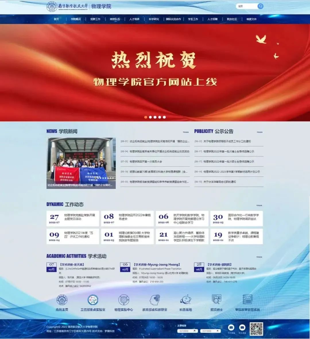 新小妲己直播 ,新气象。在前期充分调研和广泛征求意见的基础上,小妲己直播 于6月下旬启动了官方网站的建设工作,经过几轮设计修改、编程测试及内容更新,小妲己直播 官方网站即日起正式运行。小妲己直播 官方网站主色调采用南航蓝,融入小妲己直播与空天特色。网站包含小妲己直播概况 、党群工作、师资队伍、人才培养、科学研究、国际交流合作、学生工作、人才招聘、院友社区和制度文件等十个栏目,全面细致地展示了小妲己直播 的全新的风貌。